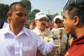 MÉXICO, D.F., 20NOVIEMBRE2008.- El Secretario de Transporte y Vialidad del D.F. Armando quintero superviso las pruebas hechas a choferes durante el quinto operativo a microbuses por parte de la SETRAVI en el mes de Noviembre, en esta ocasión sucedió en el paradero Mixcuac situado entre Av. Revolución y Calle Benbenito Cegillini. Dentro de los chequéos realizados se efectuaron pruebas de alcohlimetro, verificación de licencias y permisos, asi como estado de las unidades. FOTO: COSME RADA/CUARTOSCURO.COM