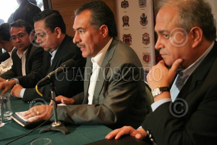 CUERNAVACA, MORELOS, 20NOVIEMBRE2008.- Héctor Ortiz Ortiz, gobernador de Tlaxcala, Marcelo de los Santo, gobernador de San Luis, Juan Manuel Oliva, gobernador de Guanajuato, Germán Martínez, dirigente nacional del PAN, Marco Antonio Adame, gobernador de la entidad, Jose Guadalupe Osuna Millán, gobernador de Baja California y Emilio Márquez, gobernador Jalisco, ofrecieron una conferencia de prensa al terminar con miras a las elecciones que se realizarán en el país el próximo año. FOTO: LUIS GIRÓN/CUARTOSCURO.COM