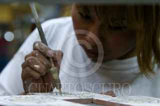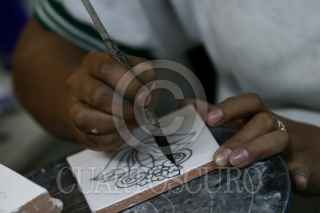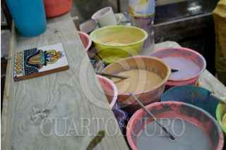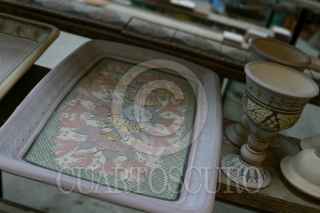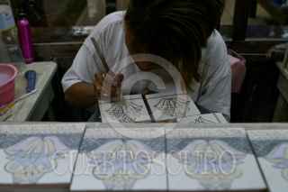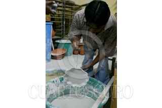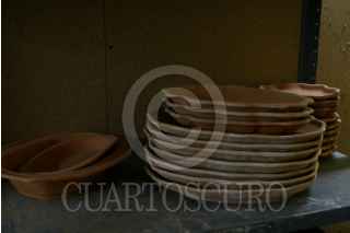PUEBLA, PUEBLA, 23NOVIEMBRE2008.- La autentica Talavera esta hecha de barro y bajo un estricto proceso de elaboración mientras que las "copias" como la cerámica son hechas con arcilla por lo que es mas económica y laa caracteristica principal de cada pieza de Talavera son los relieves en la textura. Una vajilla original de Talavera para 12 personas llega a costar hasta 18 mil pesos y cada taza con plato en un promedio de 150 pesos. FOTO: RODOLFO ANGULO/CUARTOSCURO.COM