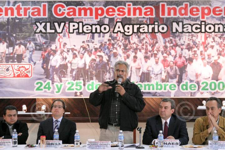 MÉXICO, D.F., 24 DE NOVIEMBRE DE 2008.- Esta mañana se realizo el XLV Pleno Agrario Nacional de la Central Campesina Independiente en las instralaciones de su organización, el orador principal fue su dirigente Rafael Galindo Jaime. FOTO: VICTORIA VALTIERRA/CUARTOSCURO.COM