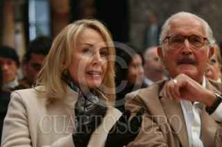 MÉXICO D.F., 24NOVIEMBRE2008.- El escritor, Carlos Fuentes, acompañado de su Esposa Silvia Lemus, acudió esta mañana al Centro Cultural México Contemporáneo, donde se le rindió homenaje por sus 80 años de vida. FOTO: GUILLERMO PEREA/CUARTOSCURO.COM
