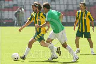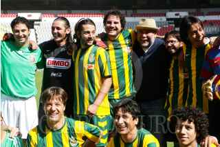 MÉXICO, D.F., 24NOVIEMBRE2008.- El actor Diego Luna participó en un partido entre la producción de la película "Rudo y Cursi" y comentaristas deportivos de Televisa. El encuentro se disputó en el Estadio Azteca. FOTO: ISAAC ESQUIVEL/CUARTOSCURO.COM
