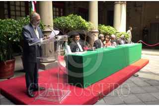 Enrique Semo, director del Instituto de Cultura del Distrito Federal, durante su discurso este medio día en el Antiguo Palacio del Ayuntamiento, donde anunció el proyecto para crear la Secretaría de Cultura del D.F. FOTO: Pedro Mera/CUARTOSCURO.COM