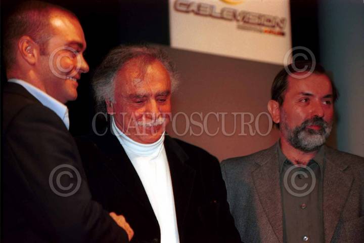Pablo Vázquez, director de Cablevisión; Carlos Payan, productor ejecutivo de Argos y Epigmenio Ibarra, director general de Argos, firmaron los términos porlos cuales Argos tendrá su propio canal.