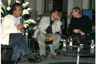 MÈXICO, D.F., 25NOVIEMBRE2008.- El dia de hoy se realizò una mesa redonda denominada 'Periodismo desde la lente' donde se presentaron, Pedro Valtierra, Director de la agencia y revista Cuartoscuro, Daniel Aguilar Fotografo de la agencia Reuters y Dario Lopez Editor fotografico de la agencia AP, donde hablaron de la vida de los fotoperiodistas. En el lugar tambien se presentaron algunos de sus trabajos fotograficos. FOTO: ENRIQUE ORDÒÑEZ/CUARTOSCURO.COM