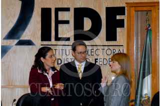 MÉXICO, D.F., 28NOVIMBRE2008.- La Consejera Presidenta Claudia Zavala Pérez, el Secretario Ejecutivo, Sergio Jesús González Muñoz y la Consejera Electoral Carla A. Humphrey Jordan, previo a la sesión ordinaria del Instituto Electoral del Distrito Federal (IEDF) FOTO: CUARTOSCURO.COM