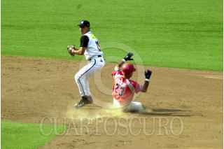 Roberto Vizcarra de los Tigres Capitalinos regresa a primera base ante un intento de robo. Los Tigres capitalinos ganaron este encuentro 8 carreras a 0 a las Aguilas de Veracruz. FOTO: David Bolaños/CUARTOSCURO.COM