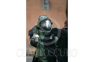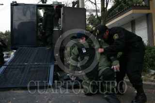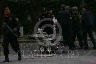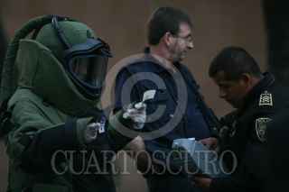 MÉXICO, D.F., 04DICIEMBRE2008.- El equipo especial antibombas de la Secretaría de Seguridad Pública del DF, monto un operativo para remover un objeto extraño que presuntamente podría ser explosivo del patio del inmueble identificado como una sede de la Christ Church Parish en la calle de Sierra Madre entre Montes Escandinavos y Monte Altai en la colonia Lomas de Reforma, al parecer el reporte lo hizo personal de seguridad de la embajada de Israel que esta enfrente. FOTO: MOISÉS PABLO/CUARTOSCURO.COM