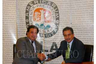PUBELA, PUEBLA, 04DICIEMBRE2008.- William Blaine "Bill" Richardson III, ex-gobernador de Nuevo México, se reunió con Jesús Ortega, dirigente nacional del PRD, en la Universidada de las Américas Puebla. FOTO: ESPECIAL/CUARTOSCURO.COM