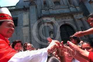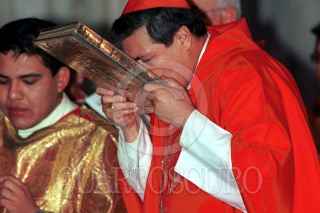 Norberto Rivera Carrera, Cardenal Primado de México, saluda a fieles al termino de la misa, en el atrio de la Catedral Metropolitana. FOTO:Oswaldo Ramírez/CUARTOSCURO.COM.