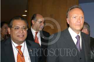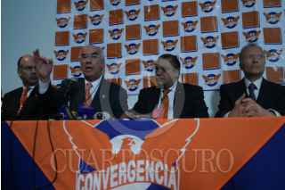 MÉXICO, D.F., 05DICIEMBRE2008.- Alejandro Chanona, Luis Maldonado, dirigente nacional de Convergencia Alejandro Gertz Manero ex secretario de seguridad durante el informe que rindieron integrantes del partido Convergencia sobre los acuerdos pactados en las reuniones que sostuvieron militantes del partido. FOTO: SÁSHENKA GUTIÉRREZ/CUARTOSCURO.COM