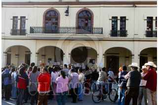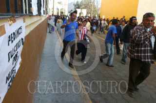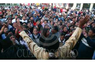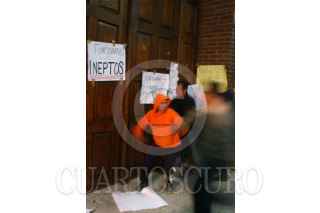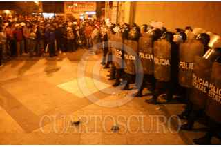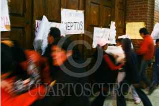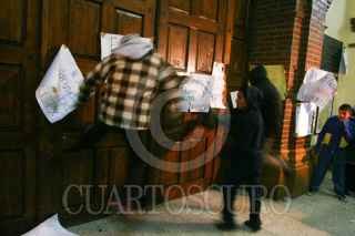 JUCHITEPEC, ESTADO DE MÉXICO, 05DICIEMBRE2008.- Habitantes de Juchitepec enardecidos por la violacion y muerte de una jovencita de 14 años de edad, salieron a exigir a las autoridades se haga justicia. Los inconformes retuvieron por algunas horas al edil, lo apedrearon y le lanzaron huevos, despues de lo sucedido intentaron quemar la presidencia municipal, minutos despues granaderos del ASE se enfrentaron contra los habitantes y los desalojaron con gas lacrimogeno. FOTO: SAUL LOPEZ/CUARTOSCURO.COM