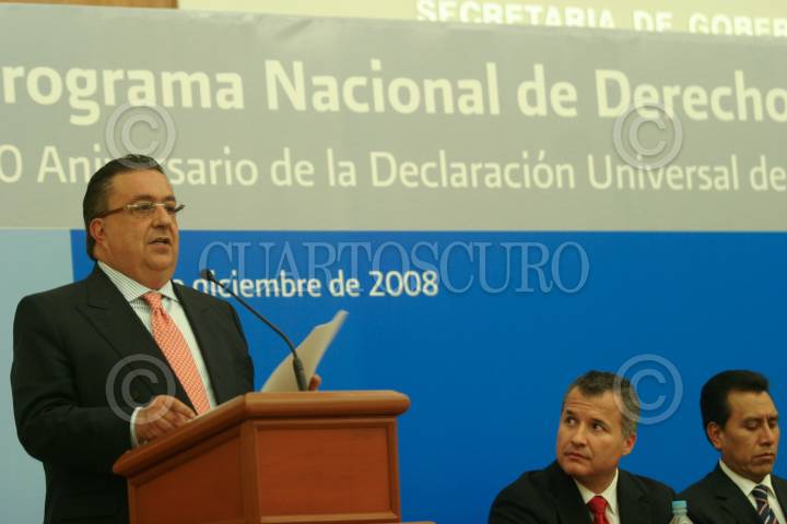 MÉXICO, D.F., 10DICIEMBRE2008.- Fernando Gomez Mont Secretario de gobernación, durante la presentación del programa Nacional de Derechos Humanos 2008-2012 FOTO: SÁSHENKA GUTIÉRREZ/CUARTOSCURO.COM