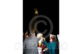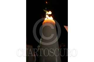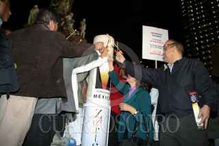 MÉXICO, D.F., 10DICIEMBRE2008.- El grupo iluminemos México encendio una vela gigante a las faldas de el Angel de la Independencia para conmemorar 100 dias e la marcha Iluminemos México, realizada del Ángel de la Independencia, en Paseo de la Reforma, al Zócalo capitalino, esta vela mide 2.10 metros de alto, 150 kilos de peso. FOTO: RICARDO CASTELAN/CUARTOSCURO.COM