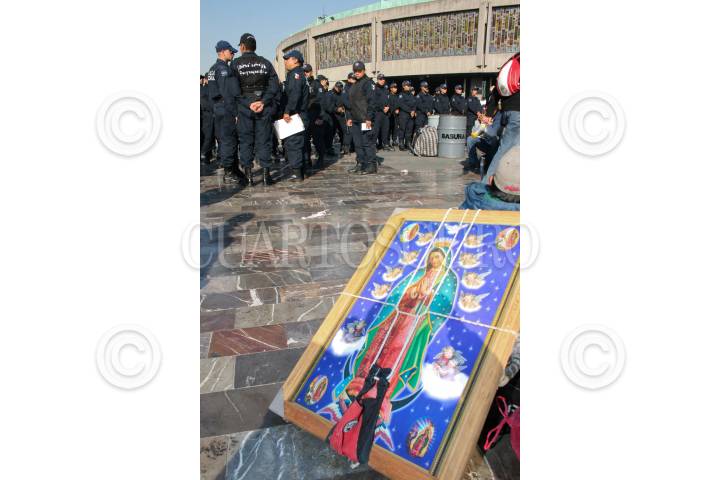 MÉXICO, D.F., 11DICIEMBRE2008.- Continuan llegando miles de peregrinos a la Basílica de Guadalupe, algunos duermen a las faldas de esta, otros tantos recorren las calles con imágenes gigantes, danzantes bailan al ritmo de su musica tradicional para entretener a los peregrinos, pero todos están reunidos en este lugar para cantarle las mañanitas virgen morena FOTO: RICARDO CASTELAN/CUARTOSCURO.COM