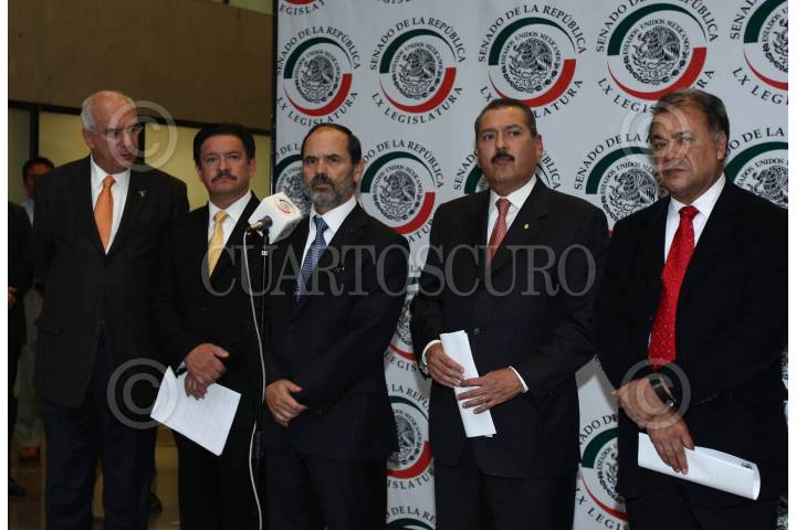 MÉXICO, D.F., 11DICIEMBRE2008.-El senador Dante delgado, Carlos Navarrete, Gustavo Madero, presidente de la mesa directiva del senado, Mario Fablio Beltrones, durante la sesión ordinaria en el Senado de la República. FOTO: CUARTOSCURO.COM