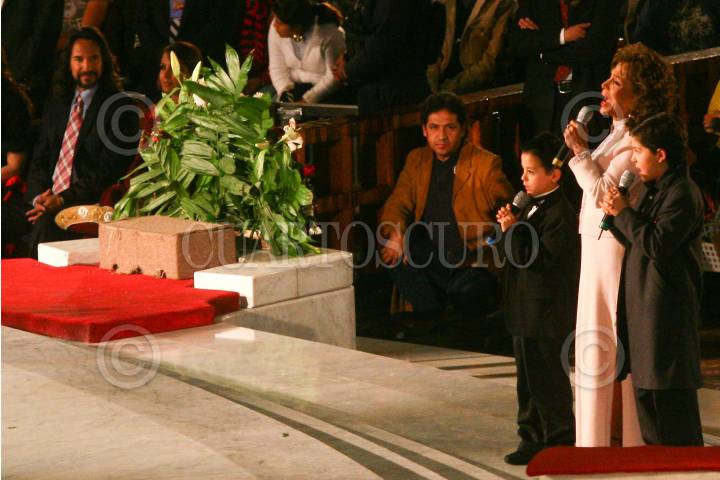 MÉXICO, D.F., 12DICIEMBRE2008.- Cientos de miles de personas abarrotaron las calles aledañas, el atrio y la Basílica de Guadalupe para cantarle las mañanitas a la Virgen de Guadalupe. Al filo de la media noche el rector de la basílica Diego Monroy encabezó las celebraciones del 477 aniversario de la aparición de la Virgen del Tepeyac. FOTO: SAÚL LÓPEZ/CUARTOSCURO.COM