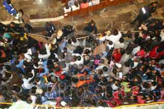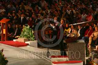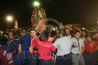 MÉXICO, D.F., 12DICIEMBRE2008.- Cientos de miles de personas abarrotaron las calles aledañas, el atrio y la Basílica de Guadalupe para cantarle las mañanitas a la Virgen de Guadalupe. Al filo de la media noche el rector de la basílica Diego Monroy encabezó las celebraciones del 477 aniversario de la aparición de la Virgen del Tepeyac. FOTO: SAÚL LÓPEZ/CUARTOSCURO.COM