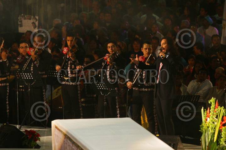 MÉXICO, D.F., 12DICIEMBRE2008.- Cientos de miles de personas abarrotaron las calles aledañas, el atrio y la Basílica de Guadalupe para cantarle las mañanitas a la Virgen de Guadalupe. Al filo de la media noche el rector de la basílica Diego Monroy encabezó las celebraciones del 477 aniversario de la aparición de la Virgen del Tepeyac. FOTO: SAÚL LÓPEZ/CUARTOSCURO.COM