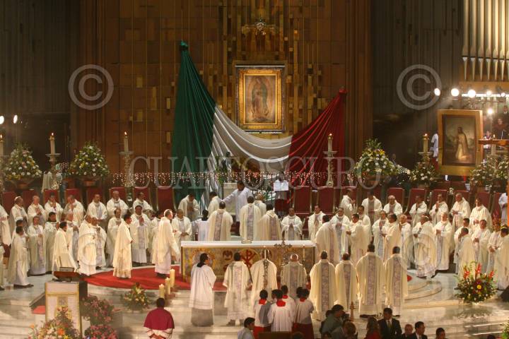 MÉXICO, D.F., 12DICIEMBRE2008.- Cientos de miles de personas abarrotaron las calles aledañas, el atrio y la Basílica de Guadalupe para cantarle las mañanitas a la Virgen de Guadalupe. Al filo de la media noche el rector de la basílica Diego Monroy encabezó las celebraciones del 477 aniversario de la aparición de la Virgen del Tepeyac. FOTO: SAÚL LÓPEZ/CUARTOSCURO.COM