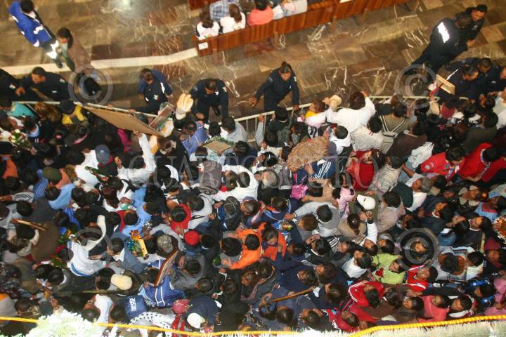 MÉXICO, D.F., 12DICIEMBRE2008.- Cientos de miles de personas abarrotaron las calles aledañas, el atrio y la Basílica de Guadalupe para cantarle las mañanitas a la Virgen de Guadalupe. Al filo de la media noche el rector de la basílica Diego Monroy encabezó las celebraciones del 477 aniversario de la aparición de la Virgen del Tepeyac. FOTO: SAÚL LÓPEZ/CUARTOSCURO.COM