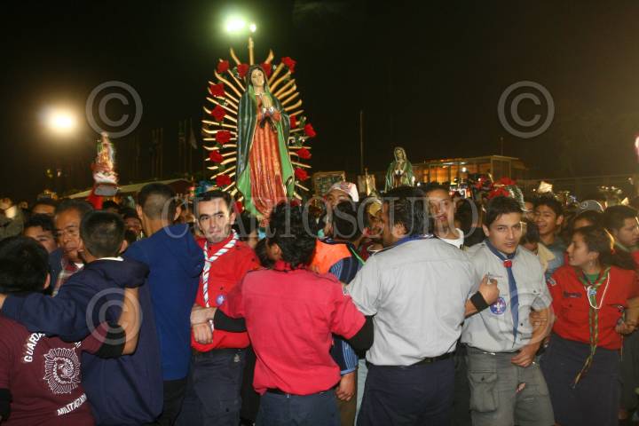 MÉXICO, D.F., 12DICIEMBRE2008.- Cientos de miles de personas abarrotaron las calles aledañas, el atrio y la Basílica de Guadalupe para cantarle las mañanitas a la Virgen de Guadalupe. Al filo de la media noche el rector de la basílica Diego Monroy encabezó las celebraciones del 477 aniversario de la aparición de la Virgen del Tepeyac. FOTO: SAÚL LÓPEZ/CUARTOSCURO.COM