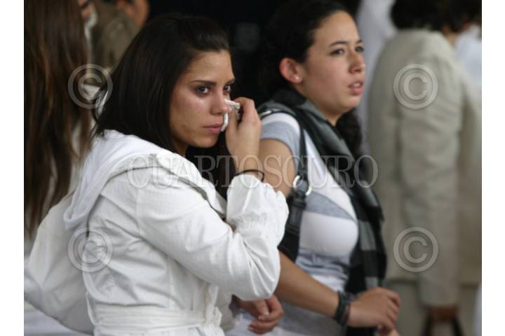 MÉXICO, D.F., 13DICIEMBRE2008.- Un asistente a la misa de despedida en memoria de Silvia Vargas Escalera, hija del ex titular de la Comisión Nacional del Deporte Nelson Vargas y Silvia Escalera, porta una camisa con la leyenda: "¡Basta Ya!". FOTO: RODOLFO ANGULO/CUARTOSCURO.COM
