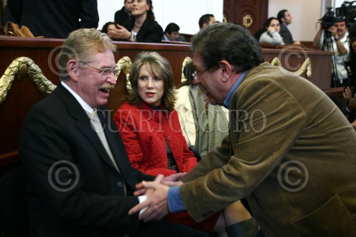 MÉXICO, D.F., 17DICIEMBRE2008.- Miguel León Portilla y Paco Ignacio Taibo II, durante la ceremonia de la entrega de las Medallas al Mérito en Ciencia y Artes. FOTO: MOISÉS PABLO/CUARTOSCURO.COM