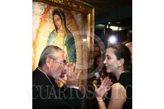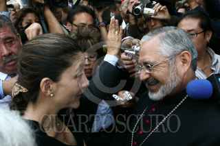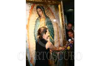 MÉXICO, D.F., 18DICIEMBRE2008.- Ingrid Betancourt, quien fuera secuestrada por sies años en la guerrilla de las FARC, es recibida por Diego Monroy, Réctor de la Basílica de Guadalupe, durante la visita que la colombiana realizó a el santuario guadalupano como una muestra de fe y pedir por los secuestrados de las guerrillas. FOTO: MOISÉS PABLO/CUARTOSCURO.COM