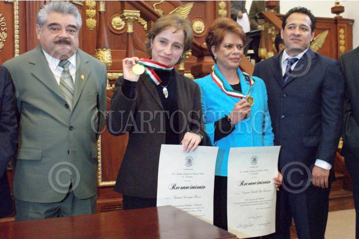 MÉXICO, D.F., 18DICIEMBRE2008.- Carmen Aristegui y Virginia Sendel, fueron reconocidas al merito ciudadano por parte de la Asamblea Legislativa de la ciudad. FOTO: VICTORIA VALTIERRA/CUARTOSCURO.COM