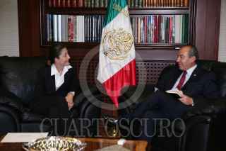 MÉXICO D.F. 19DICIEMBRE2008. El Presidente de la República Felipe Calderón se reunió en la residencia oficial de los Pinos con Ingrid Betancourt. FOTO: ARIEL GUTIERREZ/CUARTOSCURO.COM