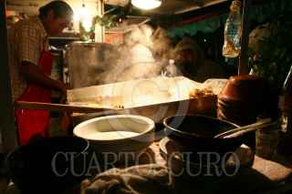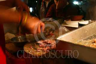 MÉXICO, D.F., 25DICIEMBRE2008.- Luego de Navidad, algunas personas acuden por unos tacos de birria para quitarse la resaca o simplemente para cenar ya que no alcanzó el "recalentado" FOTO: ISAAC ESQUIVEL/CUARTOSCURO.COM