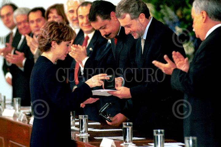 Reporteros de la fuente, toman nota del discurso del Secretario de Gobernacion Santiago Creel, en la entrega del Premio Nacional de Periodismo; que se llevo acabo en el Archivo General de la Nación. FOTO: Victoria valtierra/CUARTOSCURO.COM