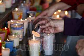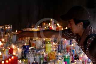 MÉXICO D.F., 29DICIEMBRE2008.- Un creyente coloca una una veladora para dar gracias por el año que termina y para pedir buenas bendiciones para el nuevo año que esta próximo a comenzar. FOTO: RODOLFO ANGULO/CUARTOSCURO.COM