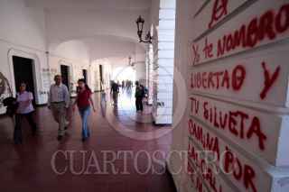 SAN CRISTOBAL DE LAS CASAS, CHIAPAS, 04ENERO2008.- Despues de la marcha de la noche de ayer, realizada por integrantes de la APPO de Oaxaca y simpatizantes del EZLN se puede observar algunos puntos de la ciudad llenos de pintas FOTO: COSME RADA/CUARTOSCURO.COM