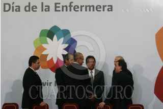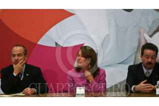 MÉXICO, D.F., 06ENERO2009.- Felipe Calderón Hinojosa Presidente de México, Margarita Zavala, y Juan Molinar Horcasitas durante la ceremonia del día de la enfermera realizada en la residencia oficial de los Pinos. FOTO: SÁSHENKA GUTIERREZ/CUARTOSCURO.COM