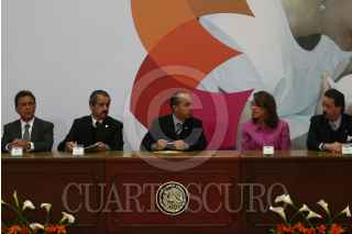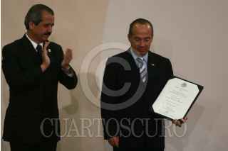 MÉXICO, D.F., 06ENERO2009.- Felipe Calderón Hinojosa Presidente de México conversa con Miguel Ángel Yunes, durante la ceremonia del día de la enfermera realizada en la residencia oficial de los Pinos. FOTO: SÁSHENKA GUTIERREZ/CUARTOSCURO.COM