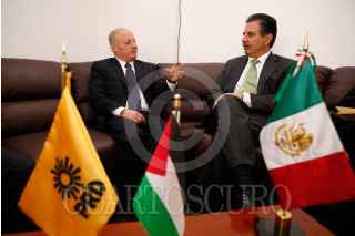 MÉXICO, D.F., 06ENERO2009.- El presidente nacional del PRD, Jesús Ortega Martínez, se reunió con el Embajador de Palestina en México, Said M. Hamad. Asimismo, Ortega Martínez manifestó su rechazo y repudio a los ataques armados del Estado de Israel sobre territorio palestino en la franja de Gaza, el cual ha causado ya más de 600 muertos y miles de heridos. FOTO:CUARTOSCURO.COM