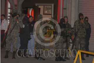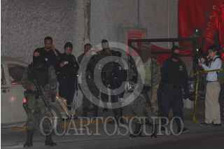 MONTERREY, NUEVO LEÓN, 06ENERO2008.- Un comando balaceó y arrojó una granada de fragmentación en contra de las instalaciones de Televisa Monterrey, sin dejar ningún lesionado. Afuera de la televisora se encontró un mensaje con el texto: "dejen de transmitir nada más a nosotros también transmitan a los narco mandatarios, esto es un aviso". En la imagen, elementos del Ejército y la policía inspeccionan el lugar del atentado. FOTO: PERIÓDICO CRUCERO/CUARTOSCURO.COM