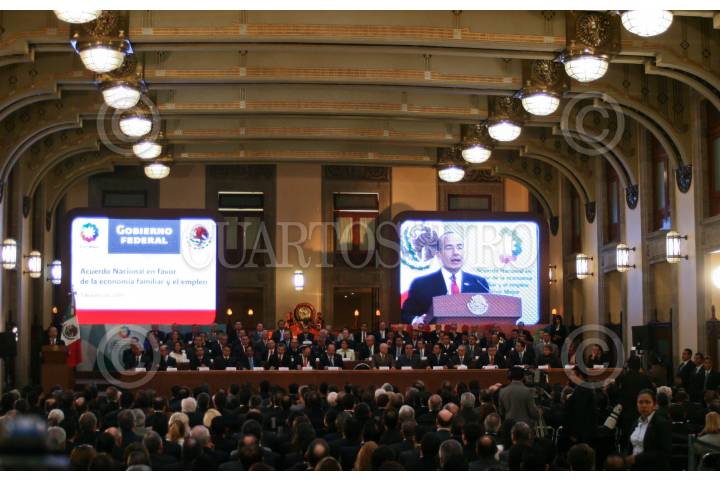 MÉXICO, D.F., 07ENERO2009.- El empresario Carlos Slim a su salida del evento de la firma de Acuerdo en favor de la Economía Familiar y el Empleo que se realizo en el salón Tesorería del Palacio Nacional. FOTO: RODOLFO ANGULO/CUARTOSCURO.COM