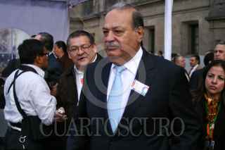 MÉXICO, D.F., 07ENERO2009.- El empresario Carlos Slim a su salida del evento de la firma de Acuerdo en favor de la Economía Familiar y el Empleo que se realizo en el salón Tesorería del Palacio Nacional. FOTO: RODOLFO ANGULO/CUARTOSCURO.COM