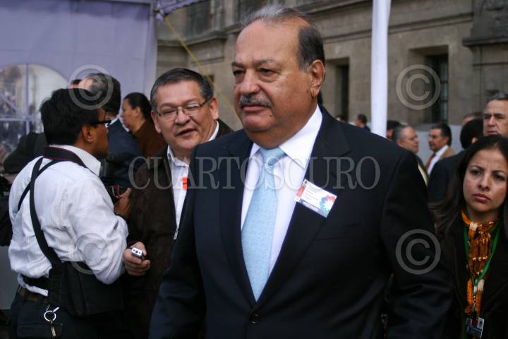 MÉXICO, D.F., 07ENERO2009.- El empresario Carlos Slim a su salida del evento de la firma de Acuerdo en favor de la Economía Familiar y el Empleo que se realizo en el salón Tesorería del Palacio Nacional. FOTO: RODOLFO ANGULO/CUARTOSCURO.COM