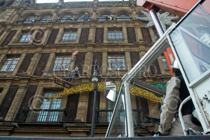 MÉXICO, D.F., 12ENERO2009.- Un señor con su hijo observando el retiro del árbol de navidad que se coloco en el zócalo capitalino. FOTO: ENRIQUE ORDÓÑEZ/CUARTOSCURO.COM