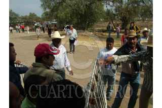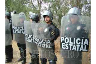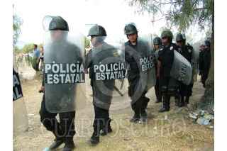 OTUMBA, ESTADO DE MÉXICO, 12ENERO2009.- Elementos de la policía estatal vestidos de civil y antimotines impidieron que medio centenar de personas del poblado de San Francisco Tlatilca irrumpieran un evento del gobernador del estado de México en esta localidad para denunciar actos de corrupción por parte del presidente municipal Francisco Javier Espinosa. FOTO: MARIO NULO/CUARTOSCURO.COM