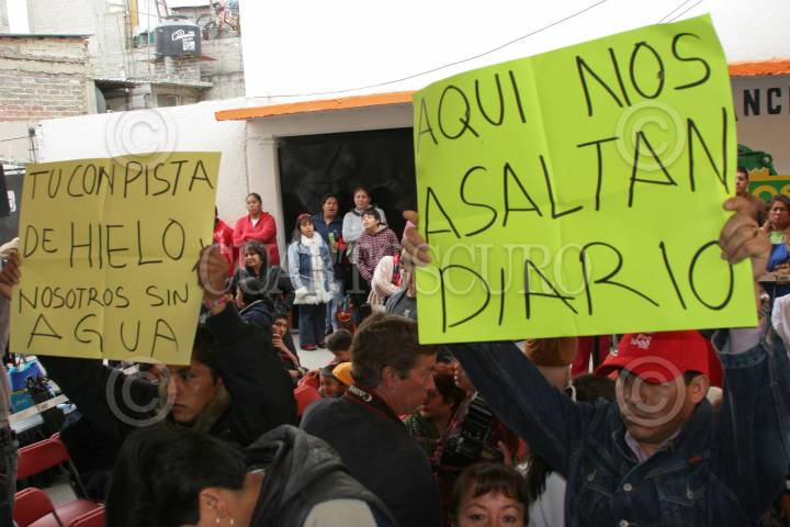 MÉXICO, D.F., 13ENERO2009.- Vecinos de la delegación Coyoacan se manifestaron con cartulinas las cuales mostraban mensajes en contra del gobierno de Marcelo Ebrard esto al termino de la inauguración del primer comedor popular FOTO: RICARDO CASTELAN/CUARTOSCURO.COM
