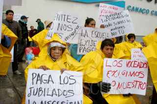 MÉXICO, D.F., 16ENERO2009.- Voceros unidos de México se manifestaron a las afueres de las oficinas centrales de esta organización pidiendo a su líder sindical Benitez pague los 7 meses de prestaciones que les deven. FOTO: RICARDO CASTELAN/CUARTOSCURO.COM