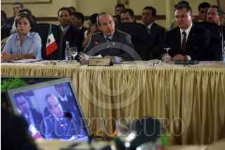 PANAMA, PANAMA.,16 ENERO 2009.- Felipe Calderon Hinojosa Presidente de México durante la inaguración de la jornada presidencial Colombia,México, y Panama contra la delincuencia organizada. FOTO: ALFREDO GUERRERO/CUARTOSCURO.COM