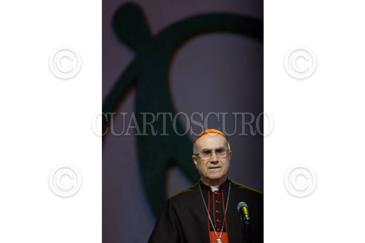 MÉXICO D.F., 16ENERO2009.- El presidente del Encuentro Mundial de las Familias, cardenal Ennio Antonelli; el secretario de Estado Vaticano, cardenal Tarcisio Bertone y el arzobispo primado de México Norberto Rivera Carrera durante la sesión conclusiva del VI Encuentro Mundial de las Familias 2009 que se celebro en el Centro de Exposiciones Bancomer. FOTO: RODOLFO ANGULO/CUARTOSCURO.COM