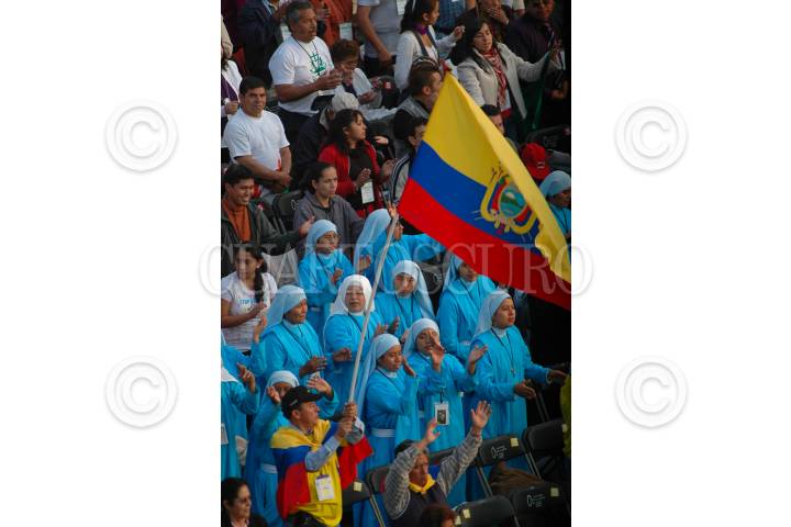 MÉXICO D.F., 17ENERO2009.- Cientos de participantes de distintas partes del mundo se congregaron en la explanada de la Basilica de Guadalupe en el evento festivo testimonial que forma parte de las actividades del VI Encuentro Mundial de las Familias. FOTO: RODOLFO ANGULO/CUARTOSCURO.COM