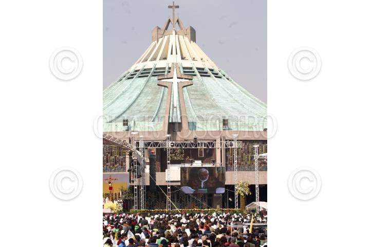 MÉXICO D.F., 18ENERO2009.- Miles de participantes presenciaron la misa que se realizo en la explanada de la Basílica de Guadalupe para clausurar los trabajos del VI Encuentro Mundial de las Familias. FOTO: RODOLFO ANGULO/CUARTOSCURO.COM